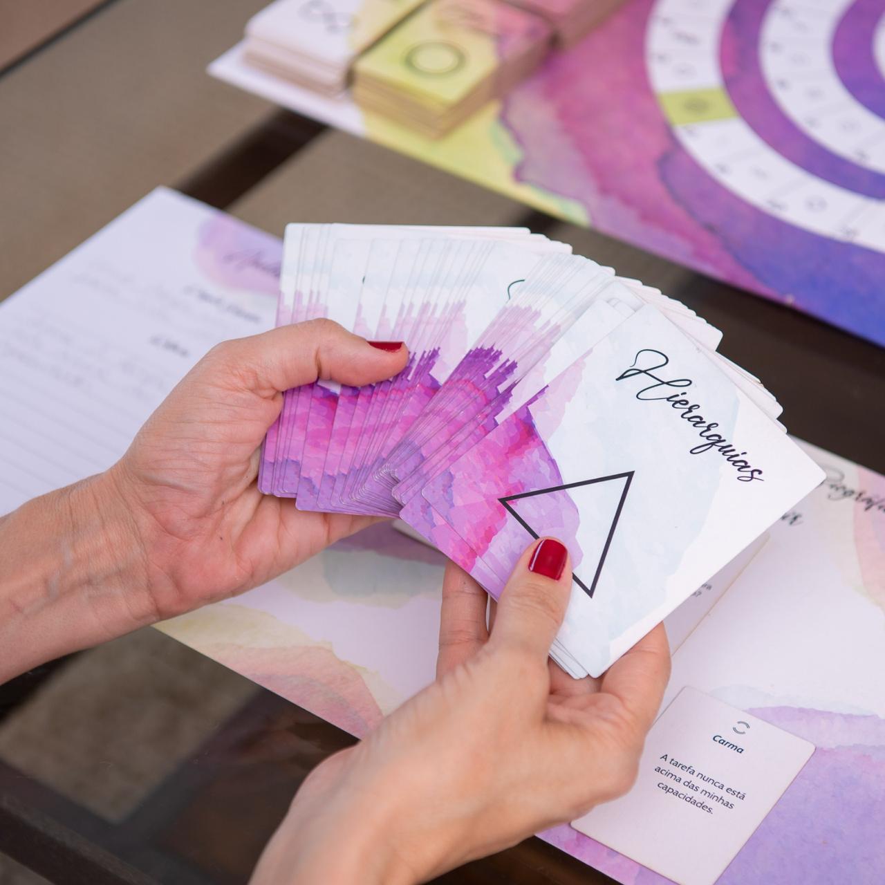 É uma forma leve e profunda de se conectar com a própria história. Por meio de cartas e perguntas simbólicas, convida à reflexão e à escuta, de si mesmo e do outro, despertando consciência e presença de modo lúdico e sensível.