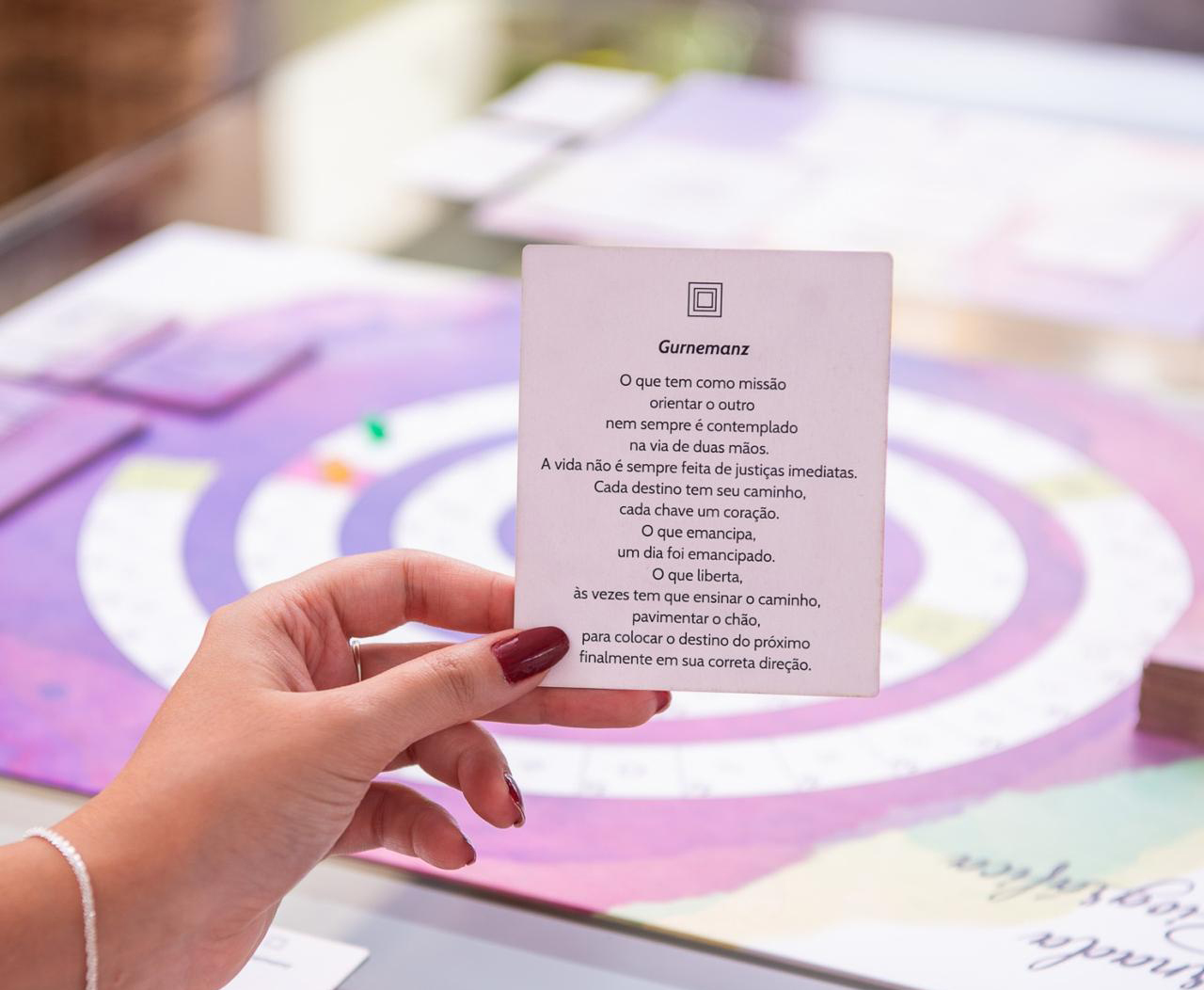 O jogador chega com uma questão latente, algo que pulsa, inquieta ou convida ao movimento, e, a partir dela, caminha por um tabuleiro que simboliza os setênios, os ciclos de sete anos que moldam a existência humana.